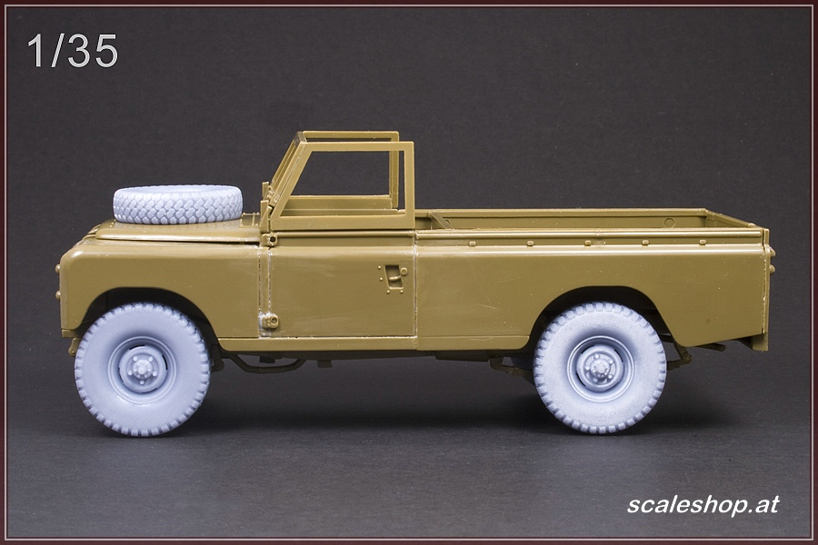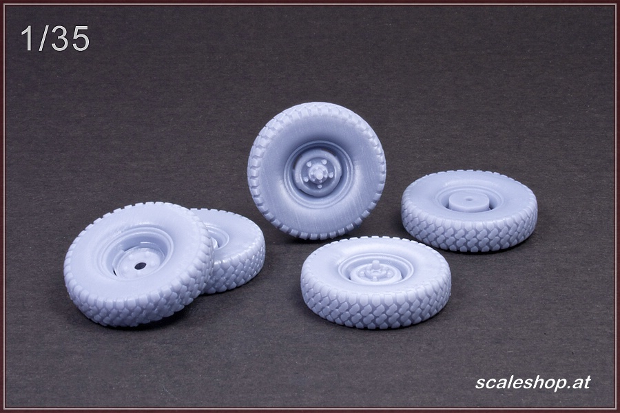 Dieser Rädersatz (Standardräder 7.50-16) im Maßstab 1:35 wurde für Land Rover 109 Bausätze von Italeri (6508 / 6542) sowie Revell (03025 / 03246) entwickelt. Das Set enthält vier Räder sowie ein Reserverad, die im Resin-3D-Druck gefertigt sind. Jedes Rad besteht aus Reifen und Felge in einem Stück und kann direkt für Umbauten oder individuelle Anpassungen verwendet werden. Die Räder werden in grauem Resin und frei von Angüssen (wie abgebildet) ausgeliefert.