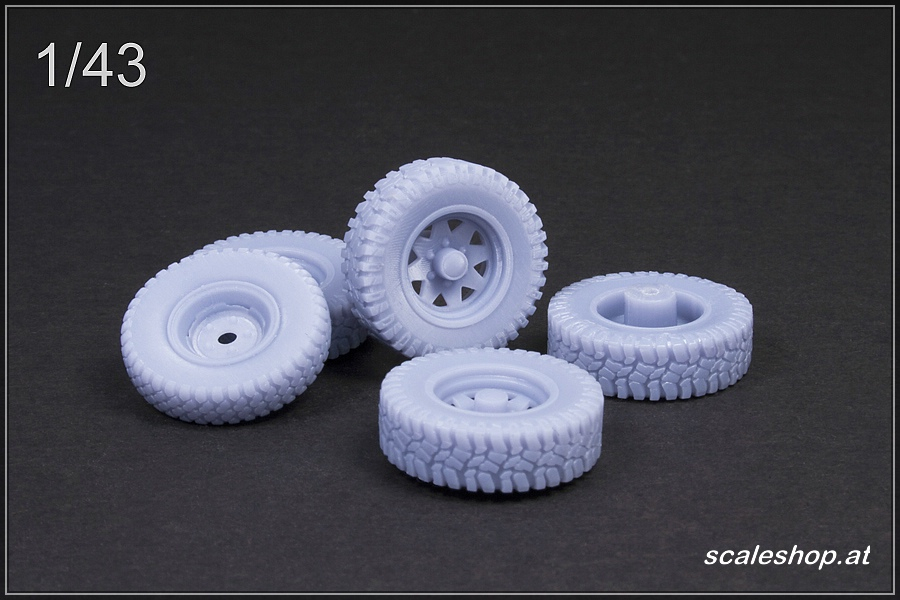Rädersatz im Maßstab 1:43, gefertigt in Resin-3D-Druck.